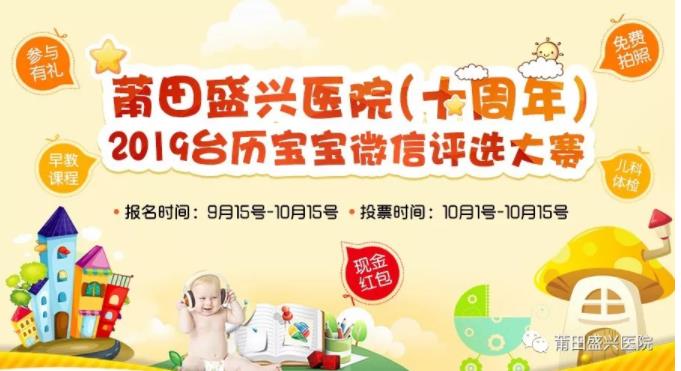 2019年盛兴医院台历宝宝微信评选大赛10月1日开始投票了