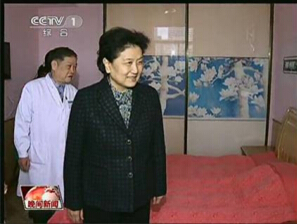 中共中央政治局委员、囯务院副总理刘延东在莆田盛兴医院院长林秋泉的陪同下参观产科病房,并对产妇进行慰问。