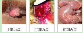 ③Ⅲ期内痔:便时带血或滴血,伴内痔脱出,或久站,咳嗽,劳累,负重时内痔脱出,须用手回纳。