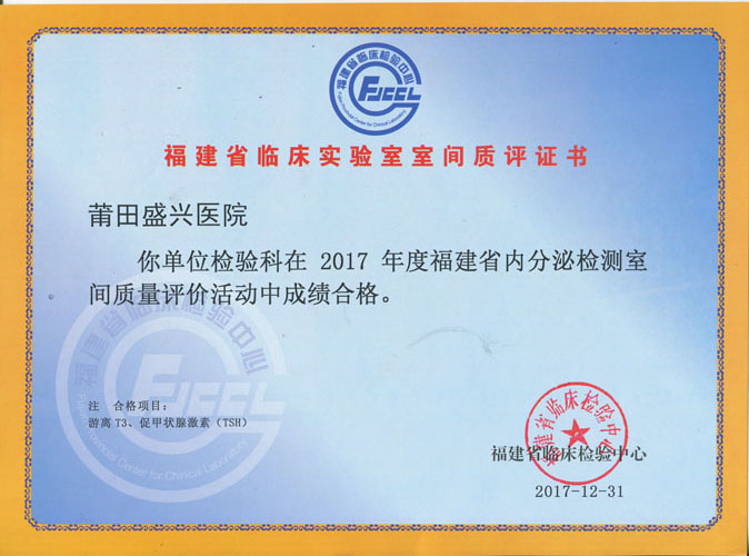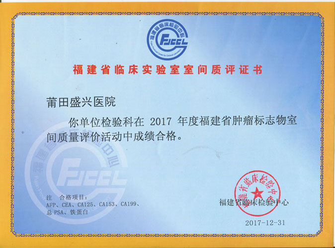 以“质量第一”为原则,从室内质量控制开始抓起,建立了质量管理体系,不断持续改进。几年来都在参加每年度两次的福建省临床检验中心的室间室内质量评价活动。