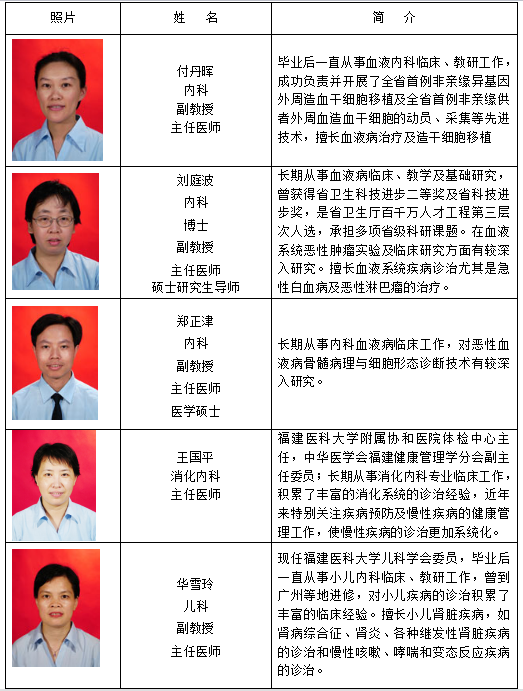 以及儿科郑湧智主治医师、血型检测和健康咨询吴顺泉主治医师、方文添护士长林娟护士长等组成的医生团队。