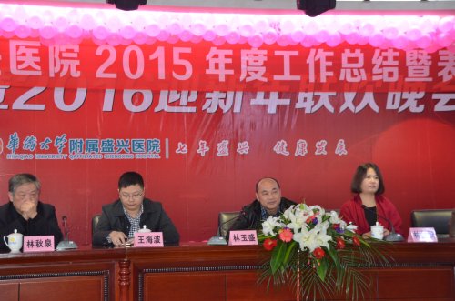 首先由驻守莆田盛兴医院的集团副总裁林秋泉先生作2015年工作总结报告以及2016年工作部署。随后,由集团公司副总裁王芬珍女士及董事长林玉盛先生讲话。然后,由业务副院长张锦华宣读《莆田盛兴医院关于2015年度先进个人、先进集体表彰的决定》;并由公司及医院领导为先进科室、班组、先进个人、好的工作者、好的干部颁奖。2015年度受表彰的有:先进科室2个(外科、儿科)、先进班组2个(ICU护理组、胃镜室)、先进个人21人(蔡程梅、徐梅琴、陈水生、郑万义、林丽君、蔡燕玉、蔡明明、陈燕梅、林梅飞、王钦、 郑明芳、罗良庭、唐艳萍、胡碧霞、宋松柏、江金武、陈娟娟、许雪琼、李文、郑秋金、黄益坚)、先进工作者6人(林双金、林开明、郑焱清、武素芳、彭丽贞、黄惠敏)、好的干部5人(曹平、吕桂兰、庞德友、许丽萍、苏颖)。