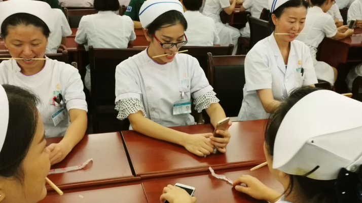 为了在“两学一做”中更好地贯彻“全心全意为病人服务”宗旨,莆田盛兴医院自2016年7—9月开展”优质服务季活动,图为医院邀请莆田学院黄秀琳教授为护士礼仪培训“微笑服务“