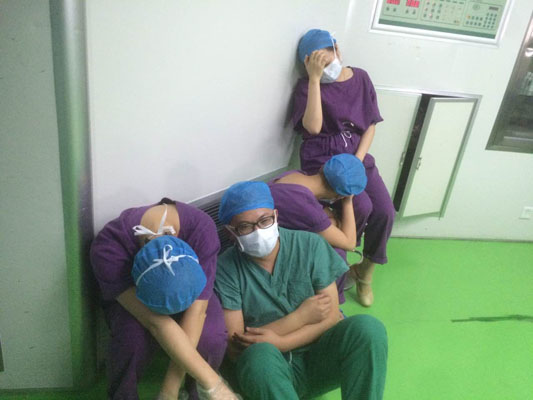 如同5月19日,那天深夜,手术室里的无影灯还亮着,当日手术总数15台,急诊手术10台(白天5台夜间5台),其中骨科一台断指从14:40一直做到21:30顺利返回病房,另一台断指3个手指头从23:30持续做到凌晨5:00,成功接指。就这样,手麻科医护人员与手术医生并肩作战从早上8:00一直奋战到5.20凌晨05:00,完成了15台手术,休息3个小时后继续以饱满的精神状态投入第二天的工作。因为次日有22台手术,其中包括2台胃切除术、骨科骨折内固定术2台、眼科白内障14台、剖腹产4台。